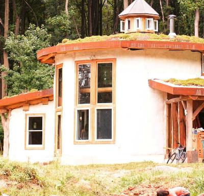 graywater, composting toilet, strawbale, passive solar, lime plaster, clay plaster, living roof, adobe floor, masonry heat, salvage materials, rubble trench